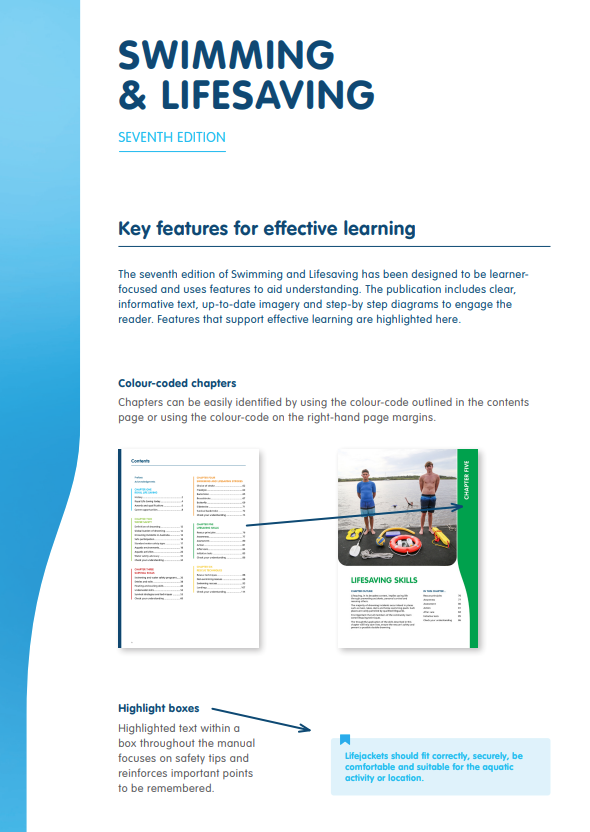 Swimming & Lifesaving 7th Edition is the most comprehensive and informative resource for water safety education available.